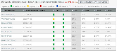 Sindicatorem sektora bankowego. Brane były pod uwagę banki z dodatnimi wskaźnikami C/Z, ROE i ROA: